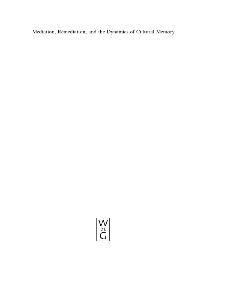 Astrid Erll Ann Rigney Eds Mediation Remediation And The Dynamics Of Cultural Memory Pdf Travel Literature Mass Media